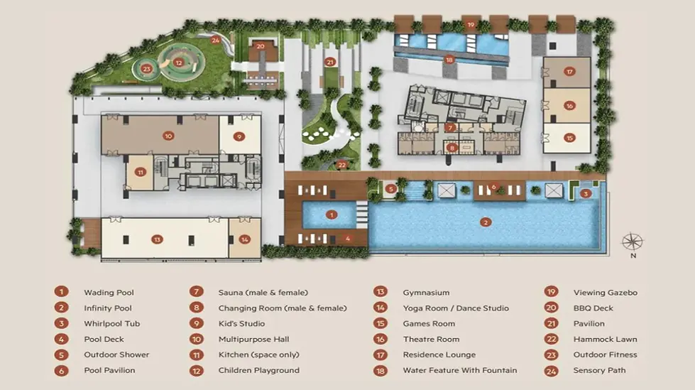 A dedicated BBQ deck and landscaped playground create a family-friendly environment within Oaka Residence. Perfect for social gatherings and outdoor relaxation, these spaces encourage community living while providing safe and enjoyable areas for children and residents to unwind.